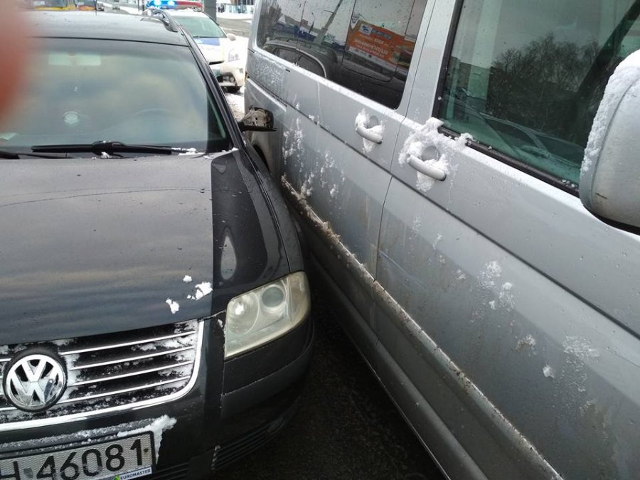 «Отже їду я собі нікуди не поспішаючи по справах. Перевзувся місяць тому в новеньку зимову гуму. На Соборності навпроти «Троянди» призупиняюсь перед пішохідним переходом, щоб пропустити людей які переходять вулицю і тут відчуваю удар ззаду. Як виявилось чоловік на бусі ще не зрозумів, що на вулиці зима і непогано було б поміняти літню гуму на зимову... » – йдеться в дописі.