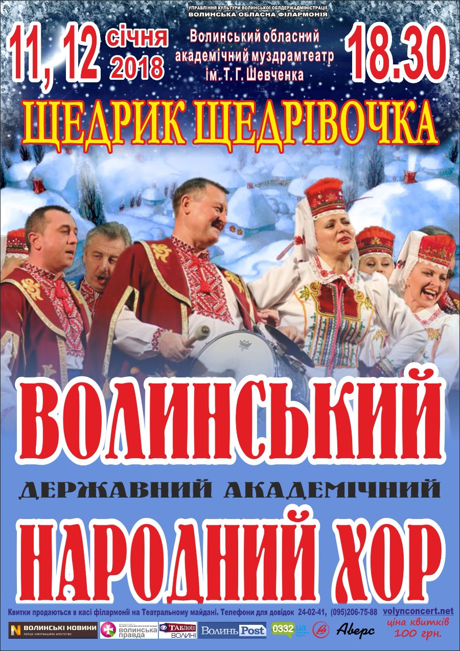 Нагоду відсвяткувати разом із Волинським державним академічним народним хором лучани матимуть 11 і 12 січня, завітавши до Волинського академічного обласного українського музично-драматичного театру імені Т. Г. Шевченка на концерти “Щедрик-щедрівочка”.