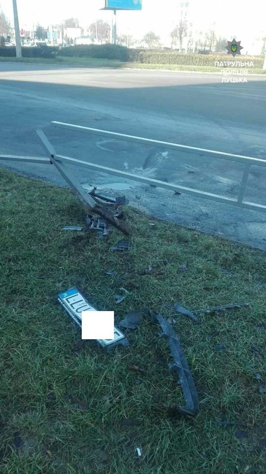 Екіпаж приблизно о 13:00 сьогодні, 26 грудня, отримав повідомлення про пошкодження огорожі на кільці Соборності-Гордіюк. На місці події винуватця пригоди не виявили, однак були уламки автомобіля та номерний знак.