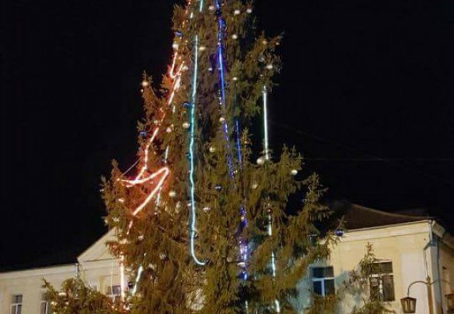 Жителі волинського міста Ківерці не задоволені виглядом цьогорічної центральної новорічної ялинки.