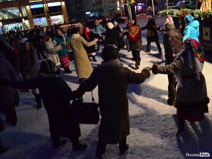 Традиційна спільна коляда волинян на честь Різдва Христового закінчилася хороводами та співами на Театральному майдані Луцька.