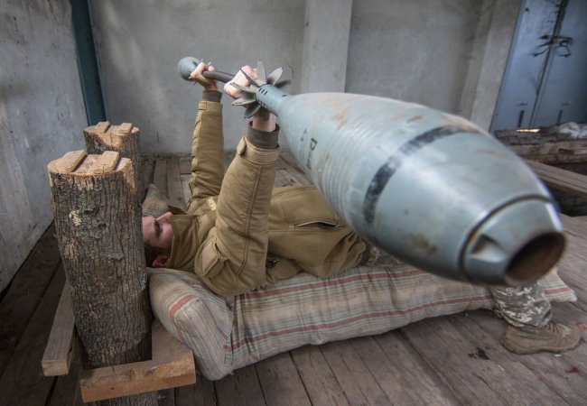 За словами Ваганова, він зробив фото 16 жовтня на позиціях української армії: в імпровізованому спортзалі офіцер виконує вправи з використанням 120-мм мінометних снарядів.