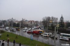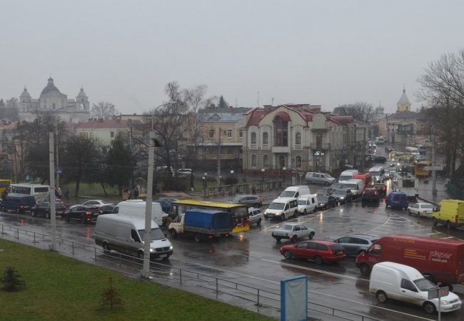 У чергу аби проїхати із невеликим інтервалом знову і знову вишиковуються автомобілі. На вулицях чимало людей, тож пішоходи практично безперервно курсують по переході біля медичного коледжу та біля Старого ринку. Окрім того, чимало людей прямують, аби скуповуватися на базарі. Відтак, автомобілі постійно пригальмовують та пропускають людей. Зрештою, рух на вказаних вулицях дещо сповільнений і утворилася велика тягучка.