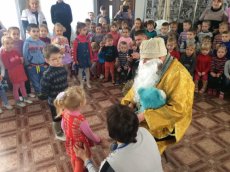 Також капелани побували в навчальних закладах м. Щастя Луганської єпархії. Вихованцям дитсадків, школи-інтернату та ліцею вручено подарунки від св. Миколая: смаколики та іграшки. А для Щастинської санітарної школи-інтернату передали ікони для облаштування молитовної кімнати.
