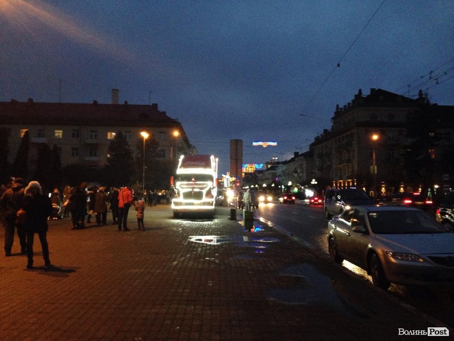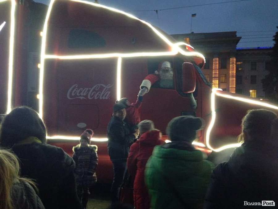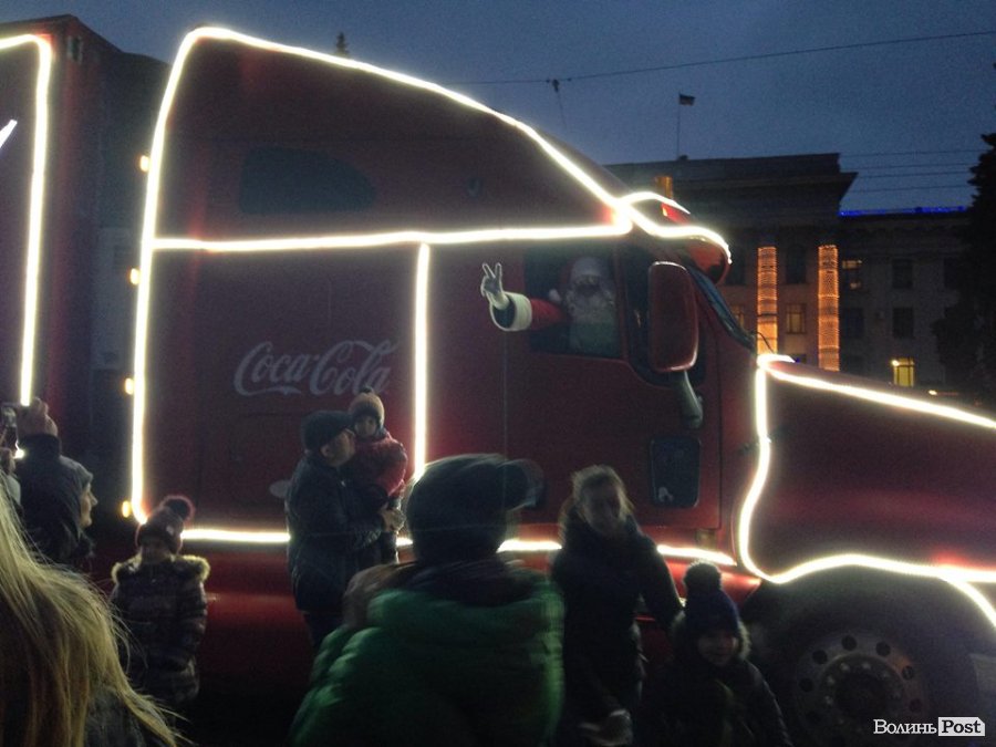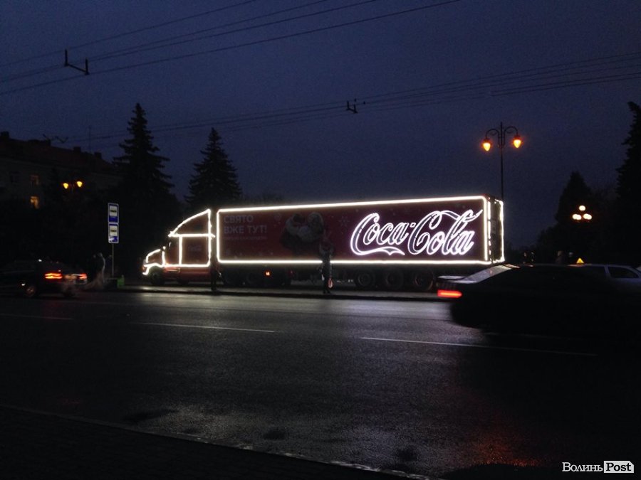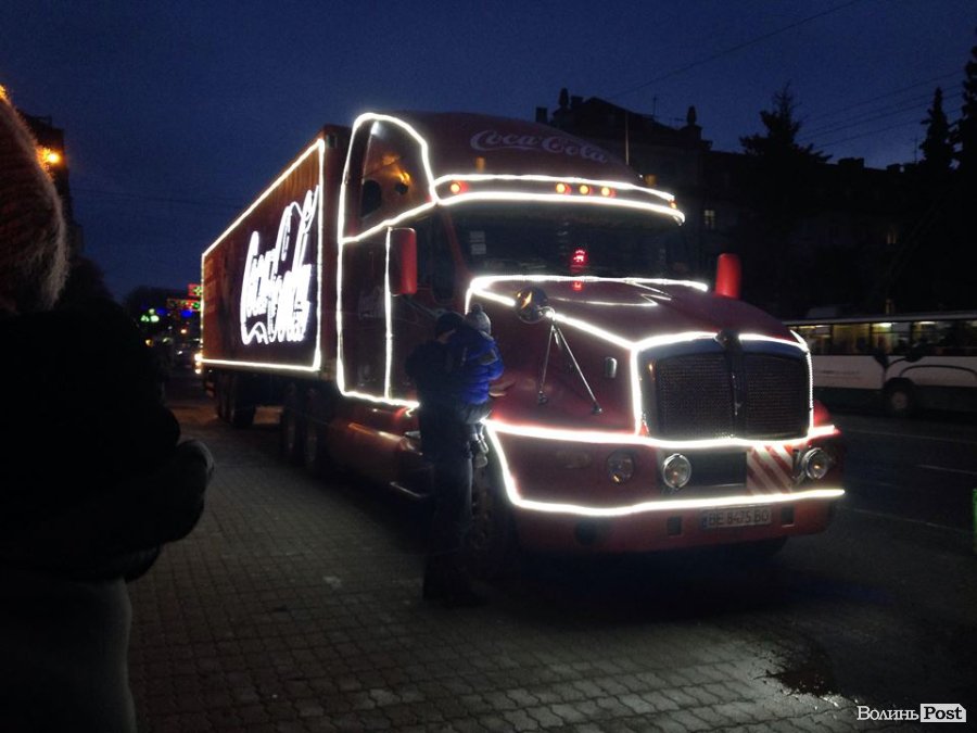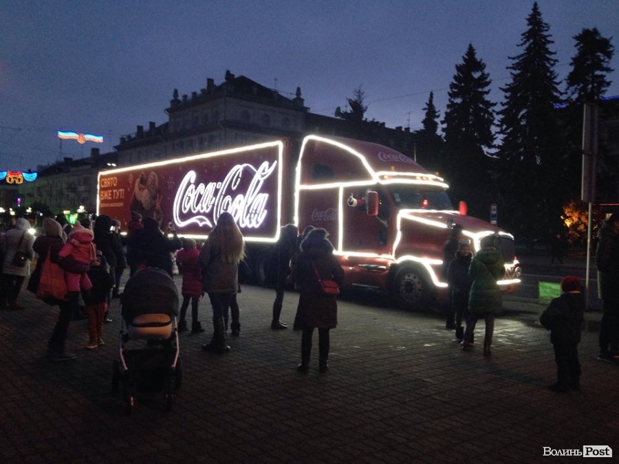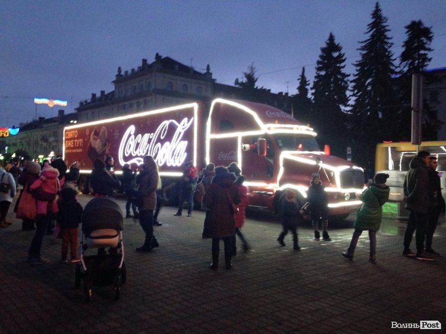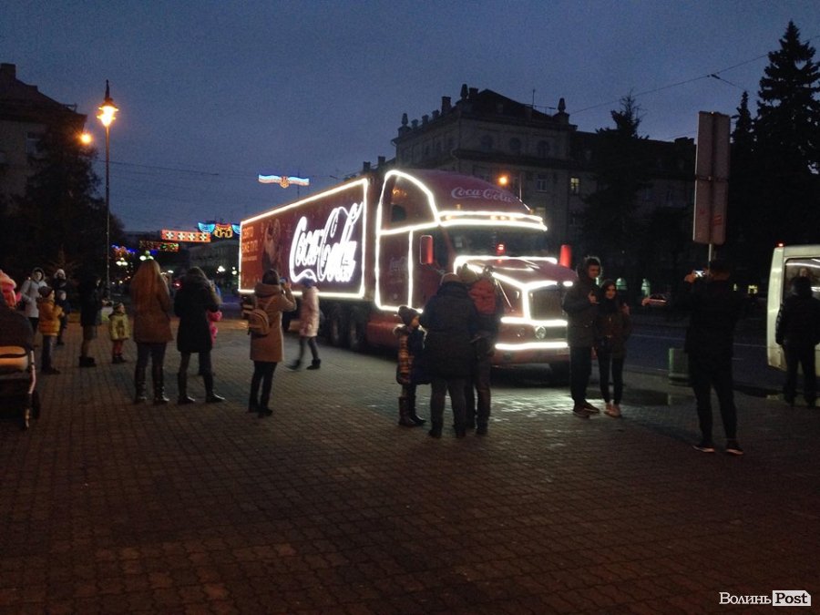 Центр Луцька "поставила на вуха" святкова фура від компанії Coca-Cola.