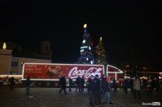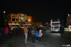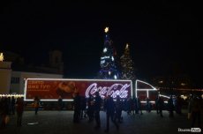 У центрі Луцька зібрались десятки дітей та дорослих, щоб зробити знімок на фоні вантажівки Coca-Cola.