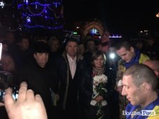 Тут зібралося чимало небайдужих людей, які вітали героїв квітами та подарунками, зокрема, від ТРЦ "ПортCity". Опісля військові капелани відслужили службу біля Стенду Героїв та заспівали "Многії літа". Бійця вручили птахів миру - білих голубів, аби тих випустили в небо та заспівали Гімн України.