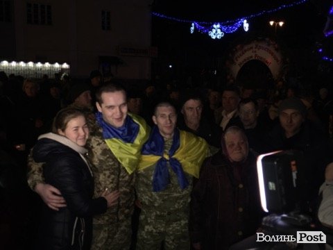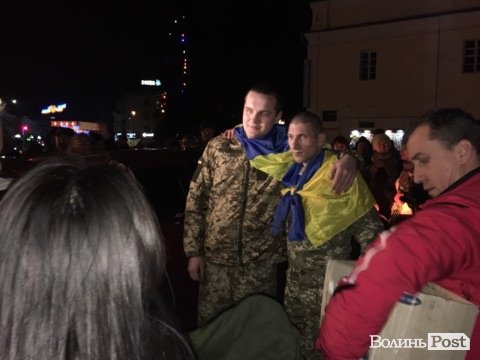 Зі сміхом та сльозами: у центрі Луцька вітали звільнених бійців. ФОТО