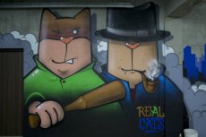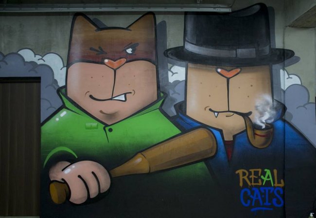 У луцькому гаражі з’явилися величезні графіті з котами-розбійниками. ФОТО
