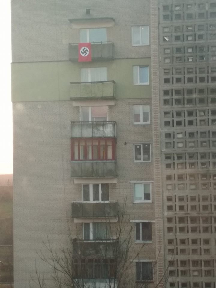 П'яний жарт чи дуркування: у Нововолинську на балконі вивісили нацистський прапор