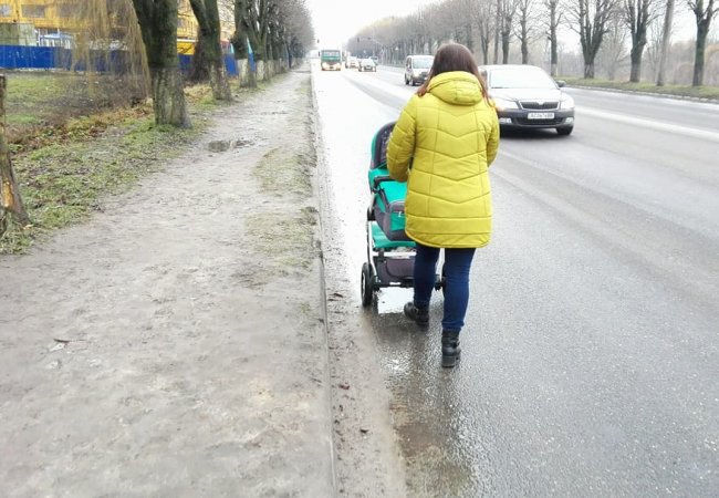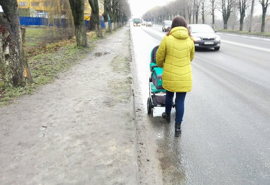За словами Горбача, із забудованого боку вулиці неможливо йти ні пішки, ні тим більше із коляскою. Мало того, що там вузенька стежечка, то і болото доводиться обходити прямо по проїжджій частині. З іншого боку — залишки кількарічного асфальту.