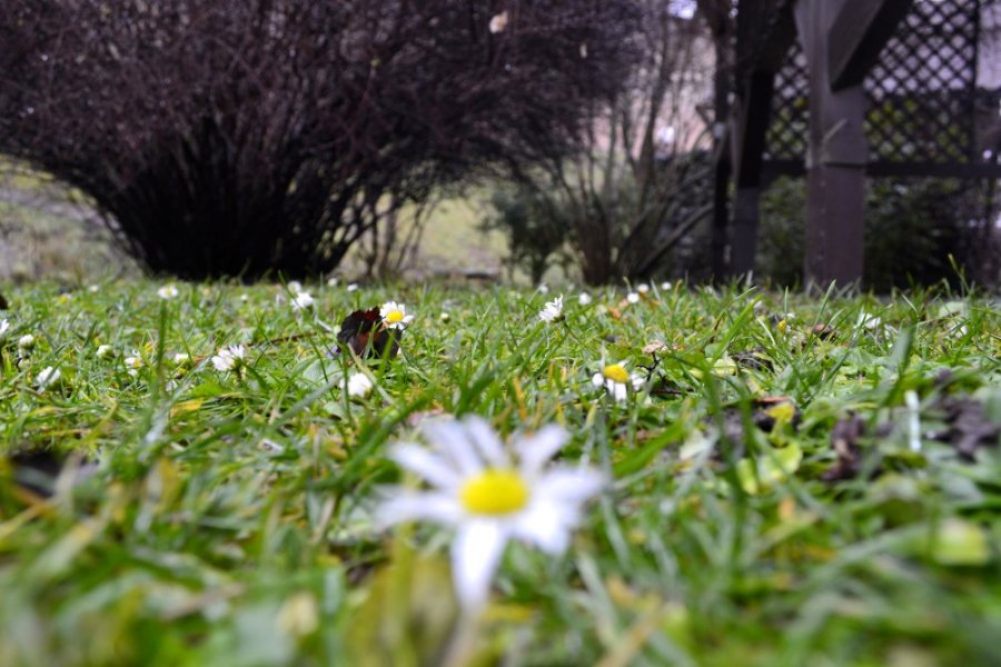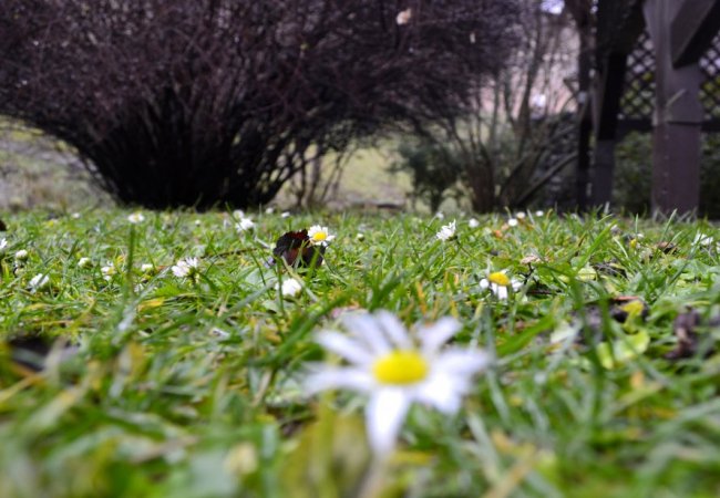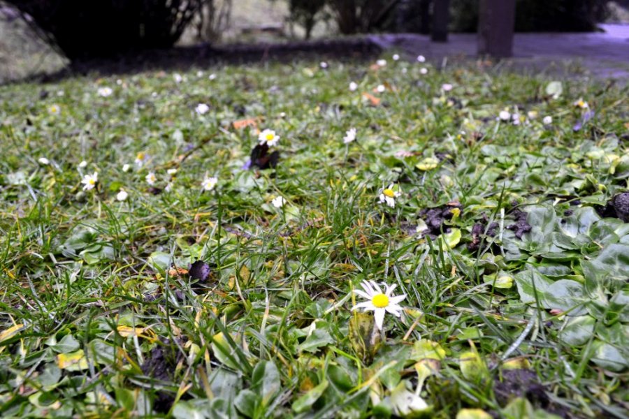В луцькому замку Любарта та навколо нього посеред зими розквітли ромашки та інші квіти.