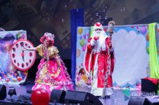 Після поверненні скрині діти покликали Діда Мороза з Снігуронькою і засвітили головну ялинку.