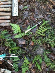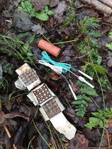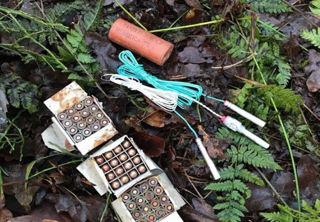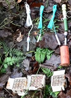 Зі схрону, що був облаштований у лісі, правоохоронці вилучили тротилову шашку, мінний детонатор, три електродетонатори та набої різного калібру.