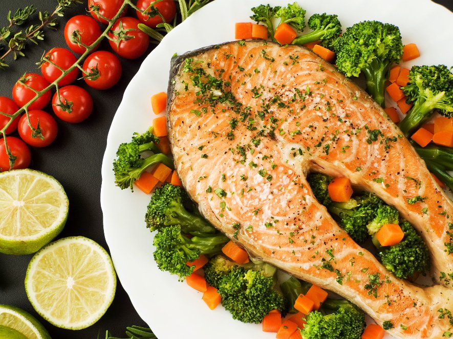 Візьміть стейки лосося, змастіть їх соєвим соусом і посипте приправою для риби. Поставте рибу в розігріту до 200 градусів духовку і запікайте протягом півгодини. Готового лосося збризніть лимонним соком і прикрасьте свіжою зеленню. Коли риба трохи охолоне, для красивої подачі її можна перекласти на листя салату.