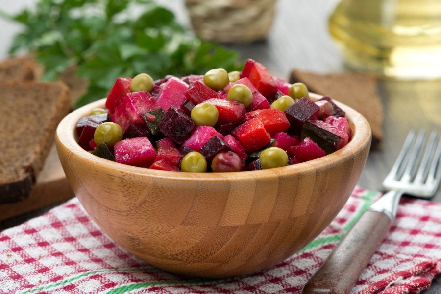 Якщо для вінегрету ви збираєтеся використовувати квасолю, а не горошок, то її треба попередньо замочити на кілька годин, а потім зварити. Моркву, картоплю і буряк слід промити і відварити в мундирах. Коли овочі зваряться, їм потрібно дати час для охолодження.