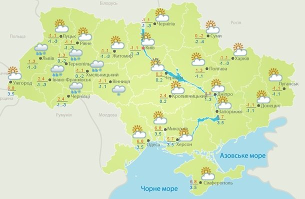 У Києві - без опадів, температура вночі 1-3° морозу, вдень близько 0°.