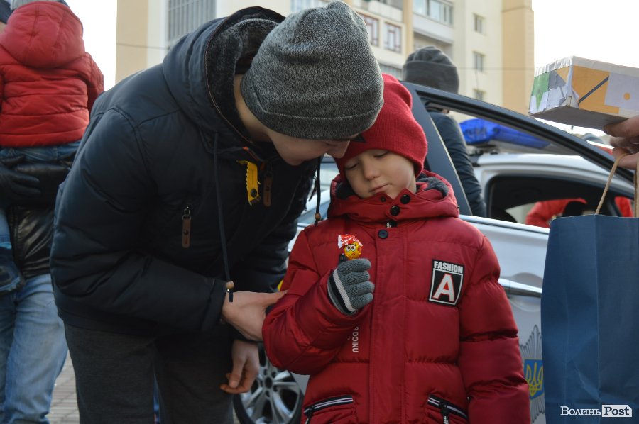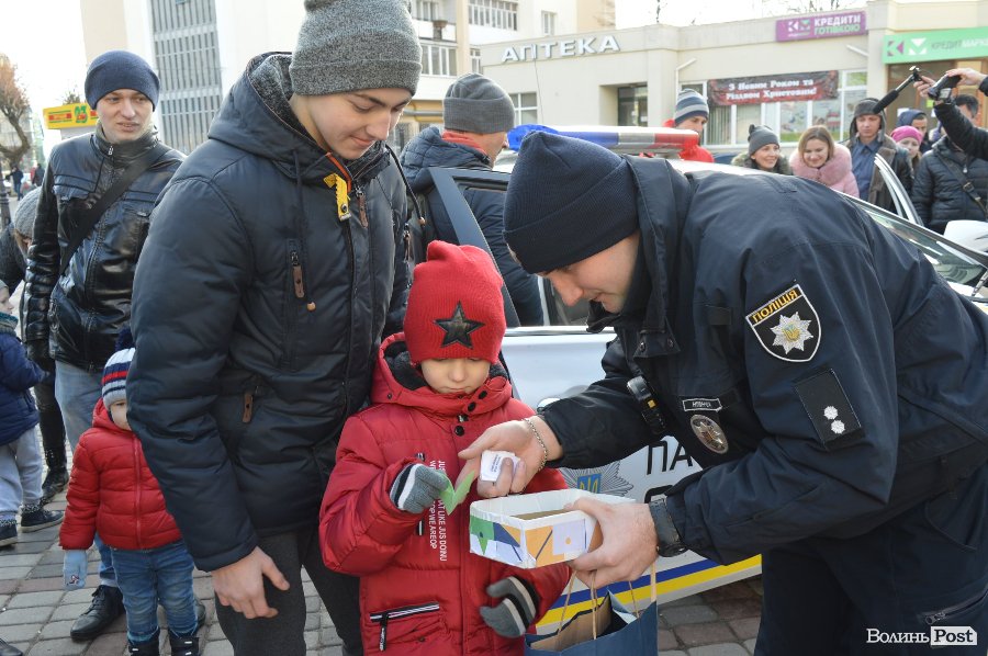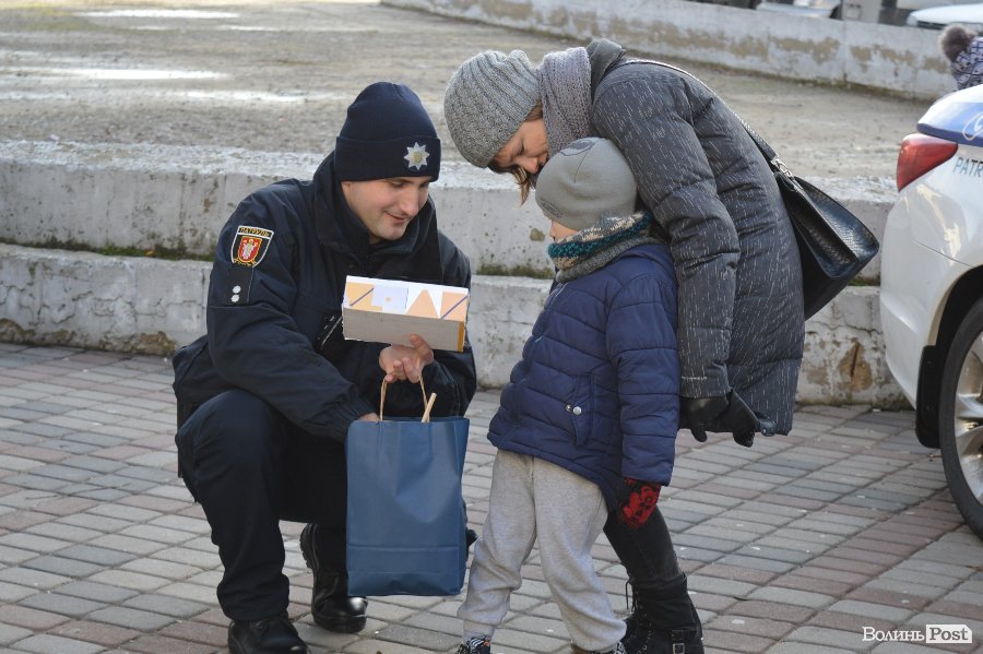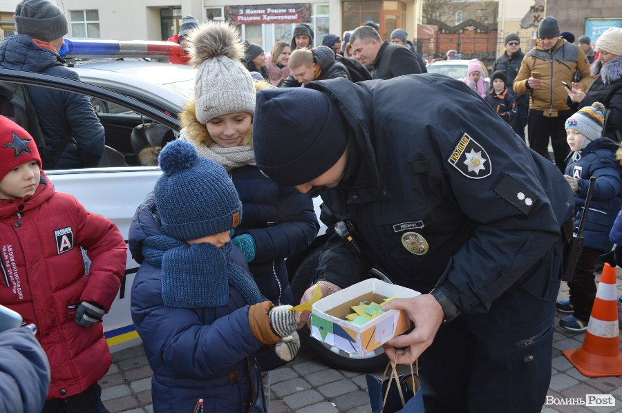 Луцькі патрульні роздавали цукерки та катали у службових автівках. ФОТО