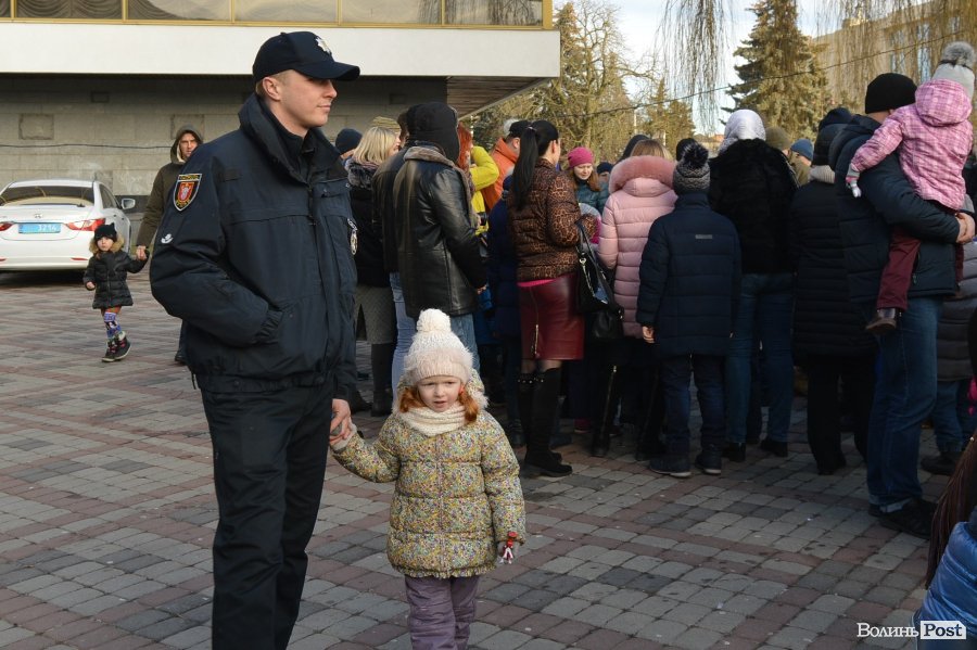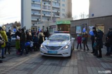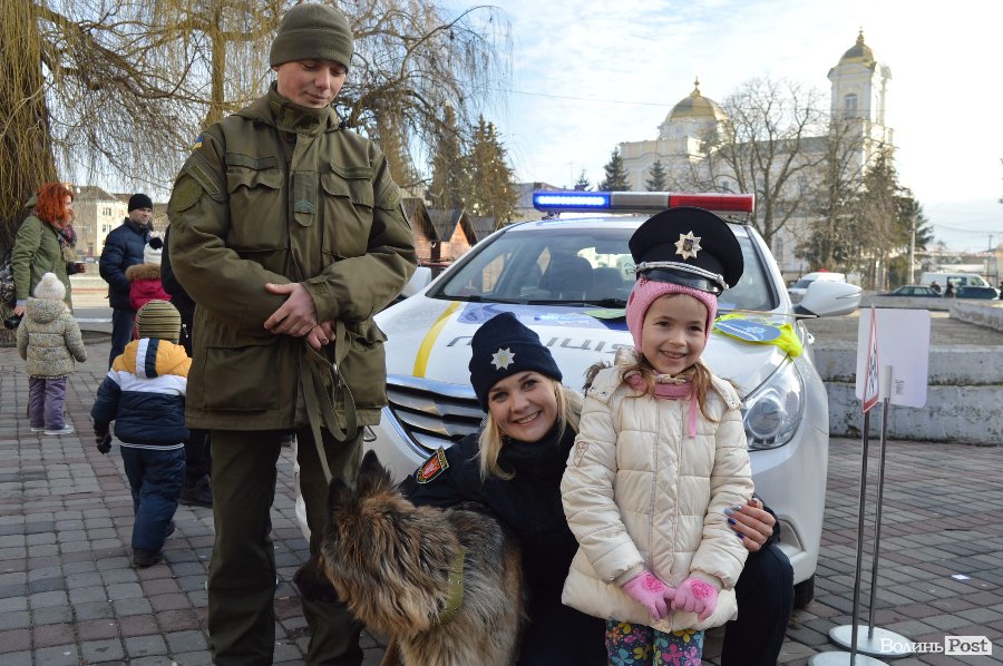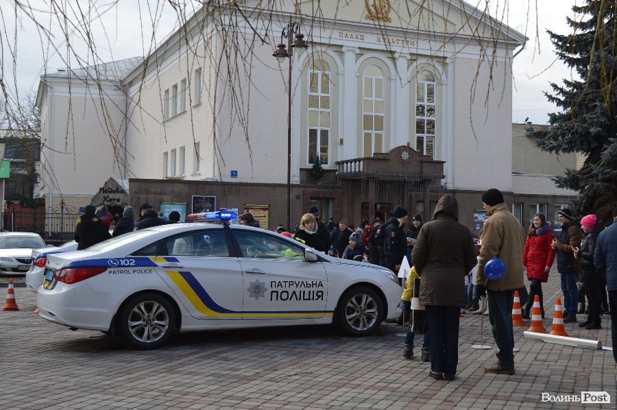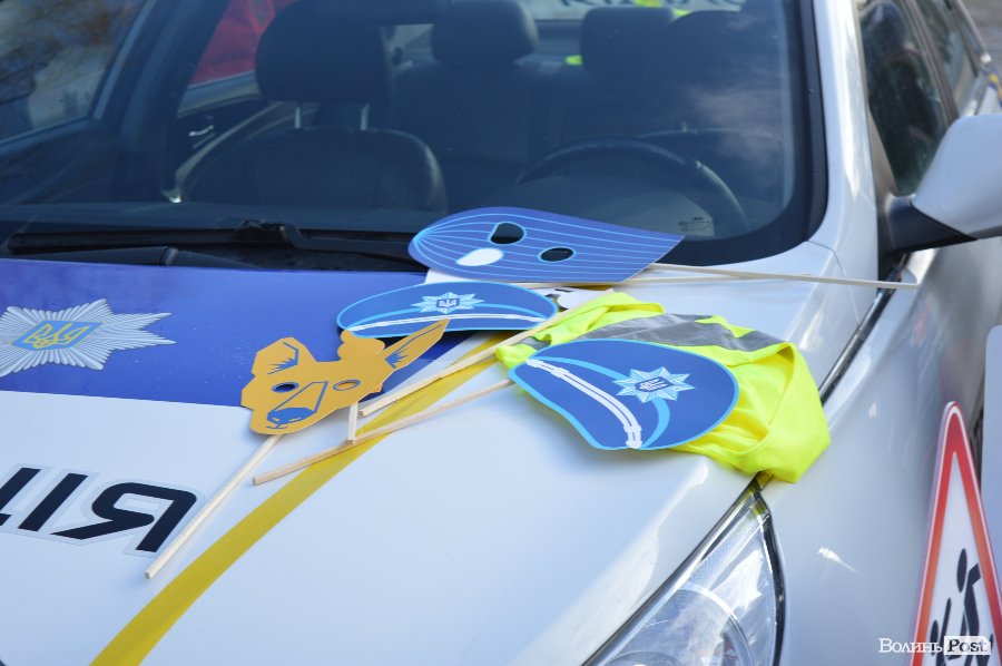 У центрі Луцька працівники патрульної поліції спілкуватись з дітьми та їхніми батьками, проводили вікторини, дарували повітряні кульки та смаколики, а також катали малечу у службових автомобілях.