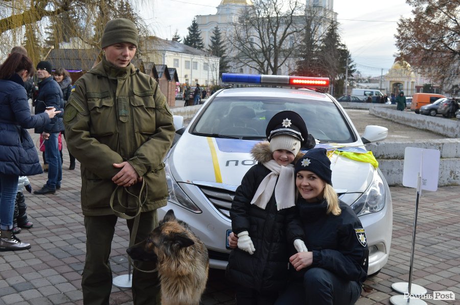 Діти із задоволенням одягали речі поліцейських та залазили у їхні службові машини. А охочі проїхатись у службовому авто до Старого ринку і назад вишикувались у чергу.