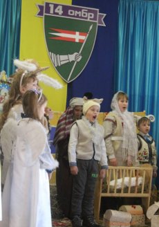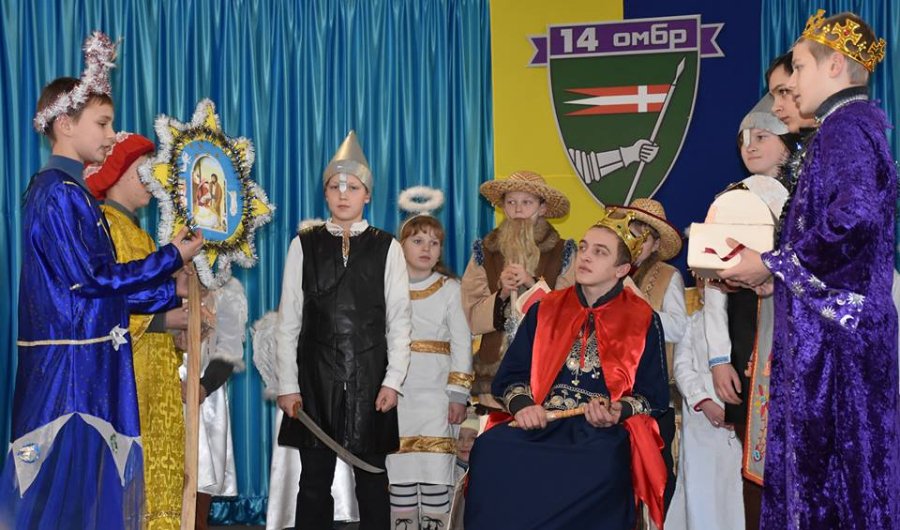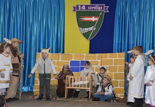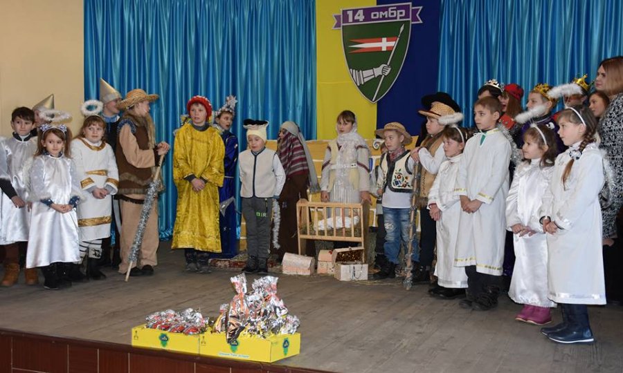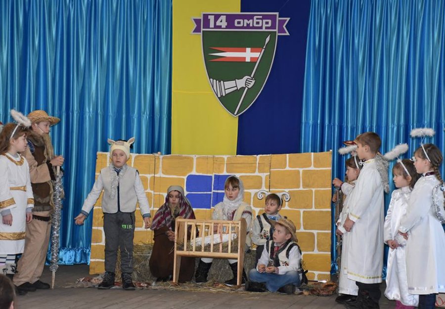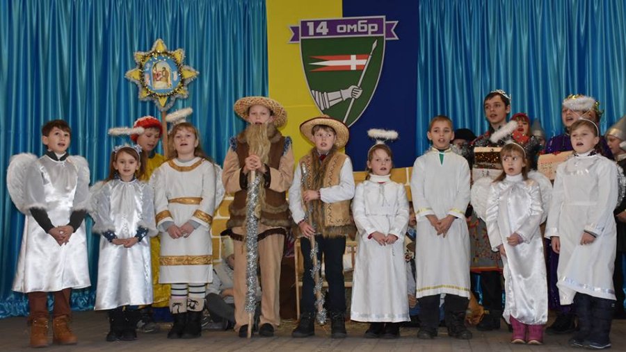 Для військовослужбовців 14 окремої механізованої бригади маленькі артисти представили різдвяну біблійну історію про новонародженого Ісуса, янголів, пастушків та волхвів, жорстокого царя Ірода й добро, яке завжди перемагає зло. Вітали вони військових колядками, віншували на благополуччя, щастя й мир для кожного з нас, і для нашої країни.