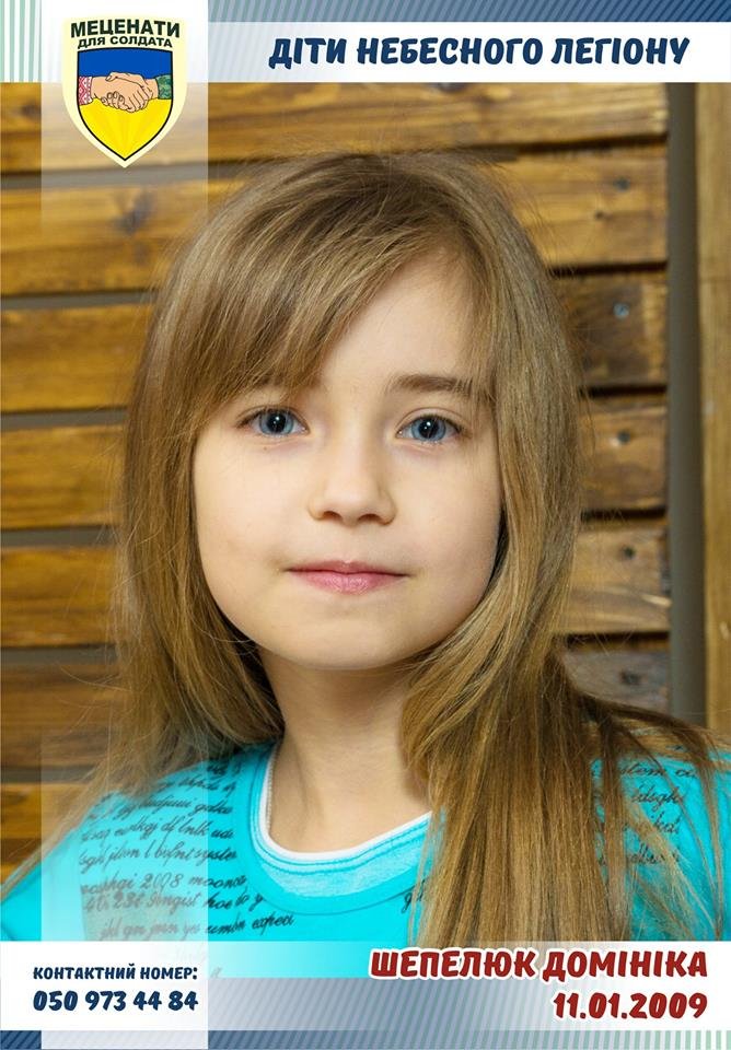 Наступній нашій іменинниці з дуже рідкісним ім’ям Домініка вже за 2 дні виповниться 9 років. Батько 5-х дітей (2-є дітей з першого шлюбу дружини стали рідними теж) Шепелюк Олексій Борисович носив звання майора, був командиром батареї, зник безвісти 25 серпня 2014 року в СМТ Кутейникове Амвросіївського р-ну Донецької обл., упізнаний за експертизою ДНК у липні 2015 року.