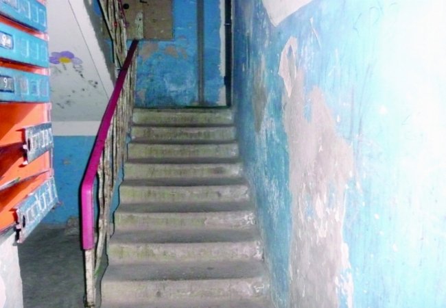 підїзд жахливий,стіни потрісканні сипиться фарба,потолок побілки не бачив напевне з того часу як будинок здали, вікна чорні, грязні, підїзд не прибирають.