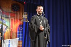 «Друзі, ми з вами зібралися вже не вперше і в такій кількості в цьому залі для того, щоб побачити хорошу виставу і полюбити Христа, полюбити Церкву Господню, бути справжніми християнами. Кожна вистава, яку ми показуємо, показує християнські чесноти, вона показує, які ми повинні бути насправді. Євангелія каже любити, а як любити – показують наші вистави», - сказав він та побажав діткам бути справжніми християнами.