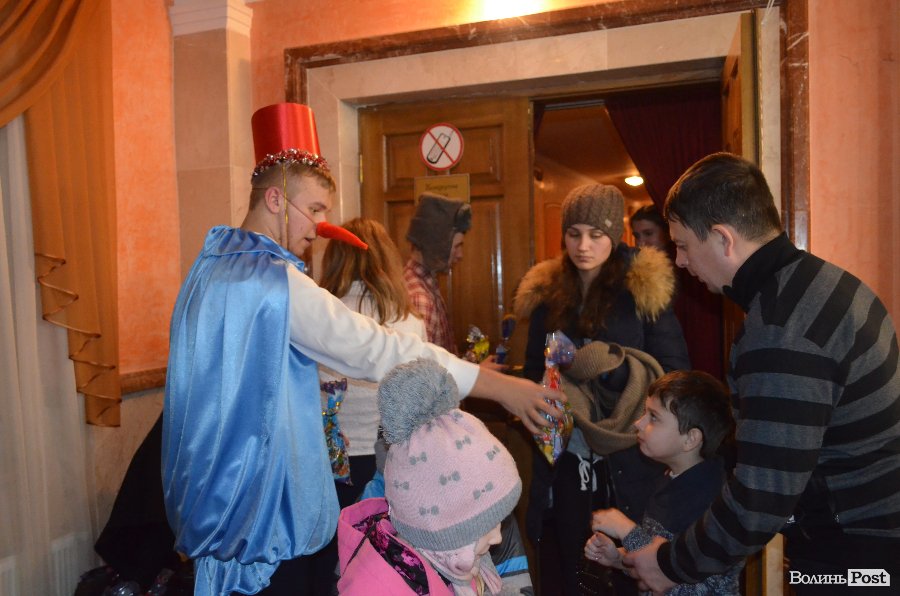 Дітям показали невеличку виставу, а у перервах між діями їх розважали аніматори у костюмах сніговиків. Також лунало багато колядок та вітань з Різдвом Христовим.