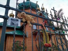 Почепили м’які іграшки на паркани церков УПЦ (МП) 10 січня, - повідомляє Район. Луцьк.