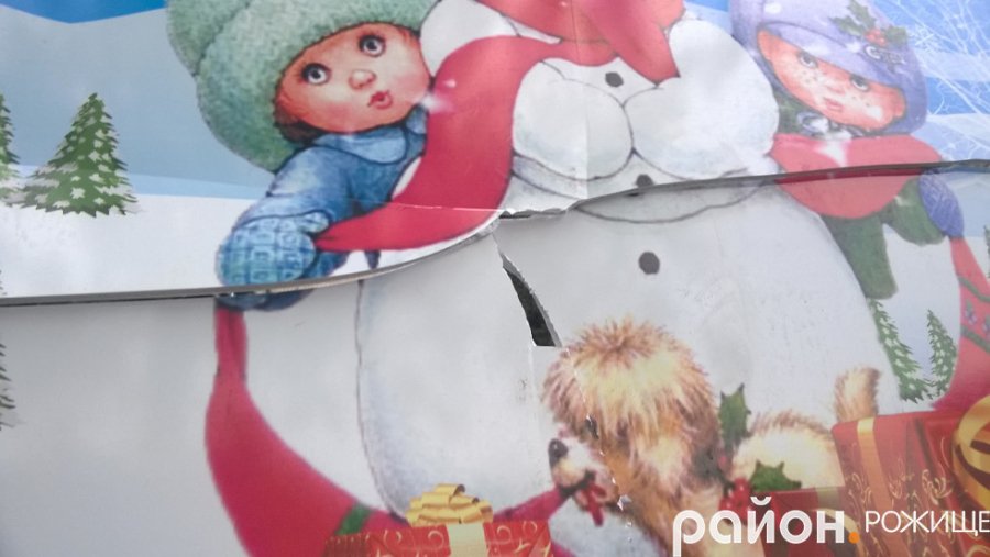 У ніч з 10 на 11 січня, невідомі вщент розтрощили один новорічний стенд біля ялинки на площі Незалежності в місті Рожище. Ще один надламали, - пише Район.Рожище.