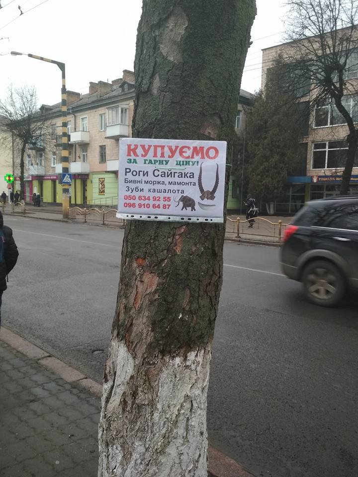 На вулицях Луцька з'явилися дивні оголошення про купівлю зубів, бивнів та рогів.