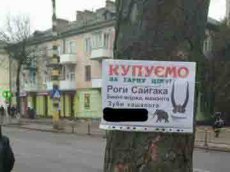 "Вулиці Луцька заполонила дуже дивна реклама. Практично в кожному районі міста невідомі громадяни обклеїли електроопори банерами з незвичною пропозицією. Люди готові купити роги сайгака, бивні моржа та мамонта, а також зуби кашалота.