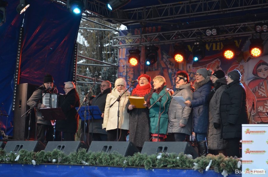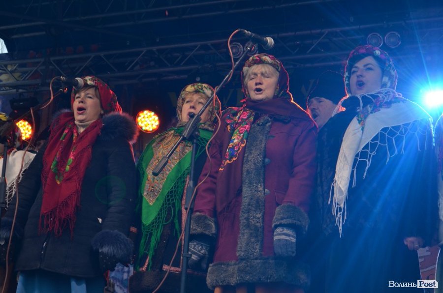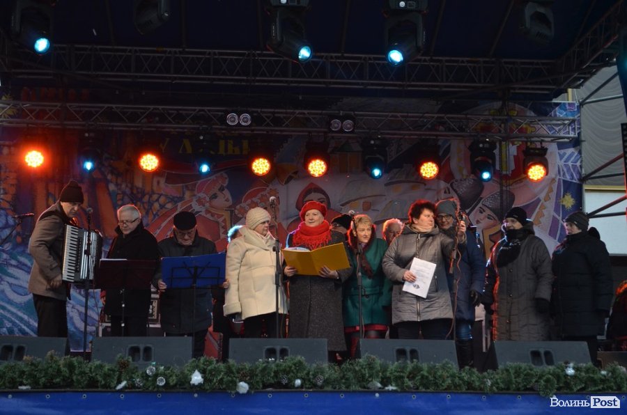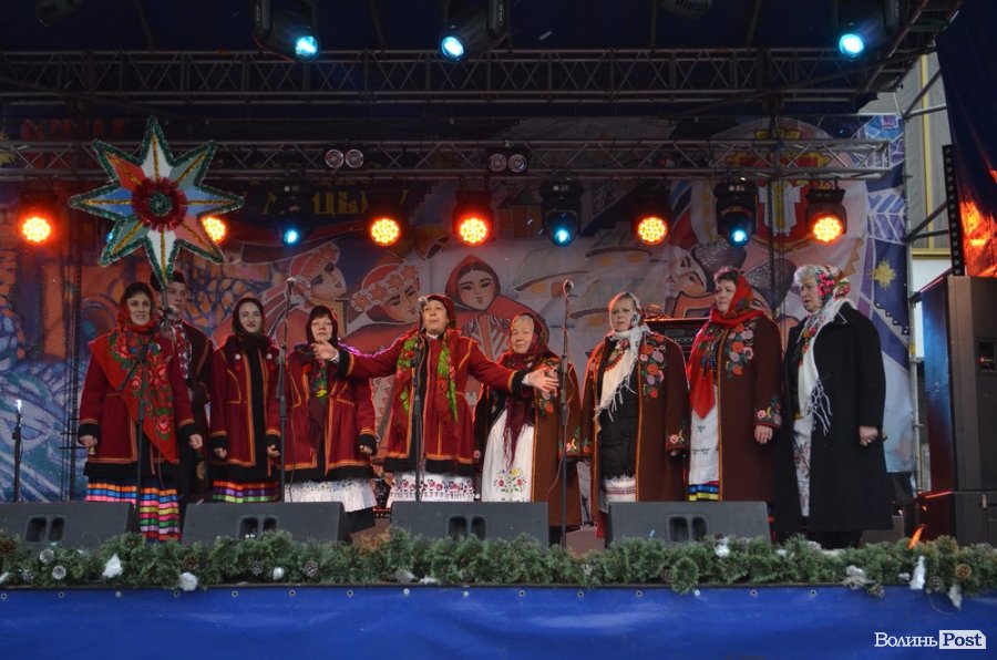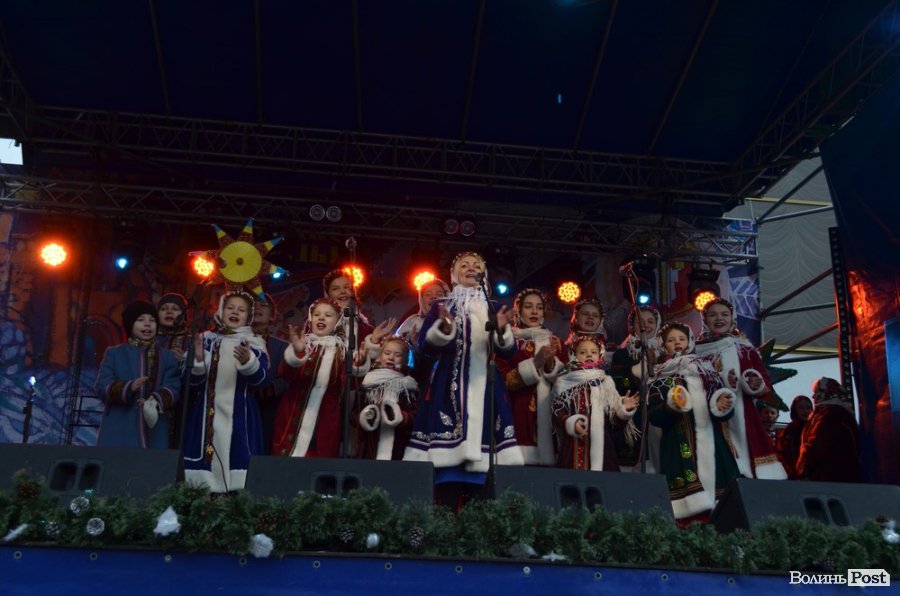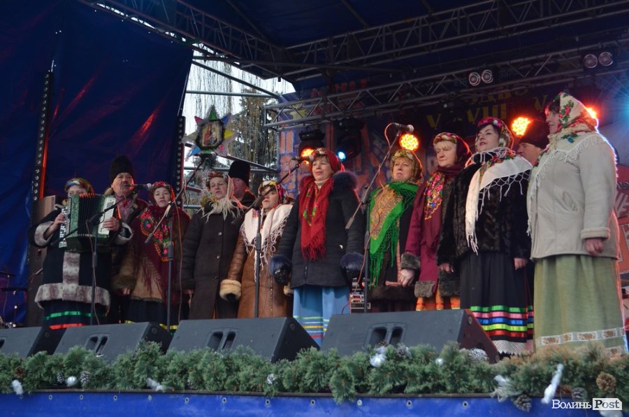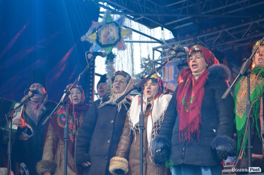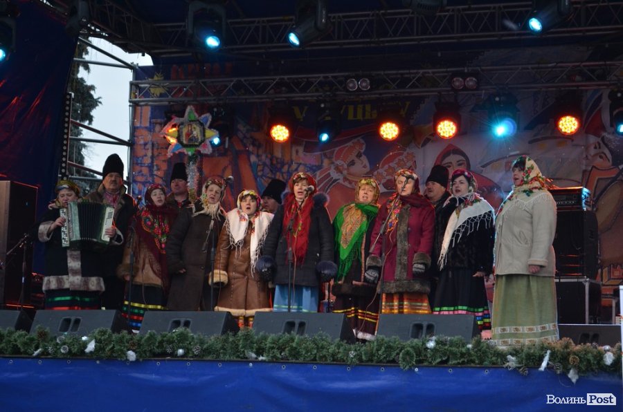 «Колядкова» частина програми розпочалася із виступів народних аматорських фольклорних гуртів «Полісянка» і «Дивоцвіт». Опісля на сцені з’явився вокальний ансамбль луцької школи №1 «Співаночка». До слова, колектив неабияк запалив слухачів піснею Ірини Федишин «Україна колядує» - чимало глядачів підспівували, а наймолодші навіть пустилися в танок. Юних лучан на сцені замінив колектив «Писанка» із Рожища, який виконав старовинні колядки. Опісля виспівував зі сцени колектив «Сокільська родина».