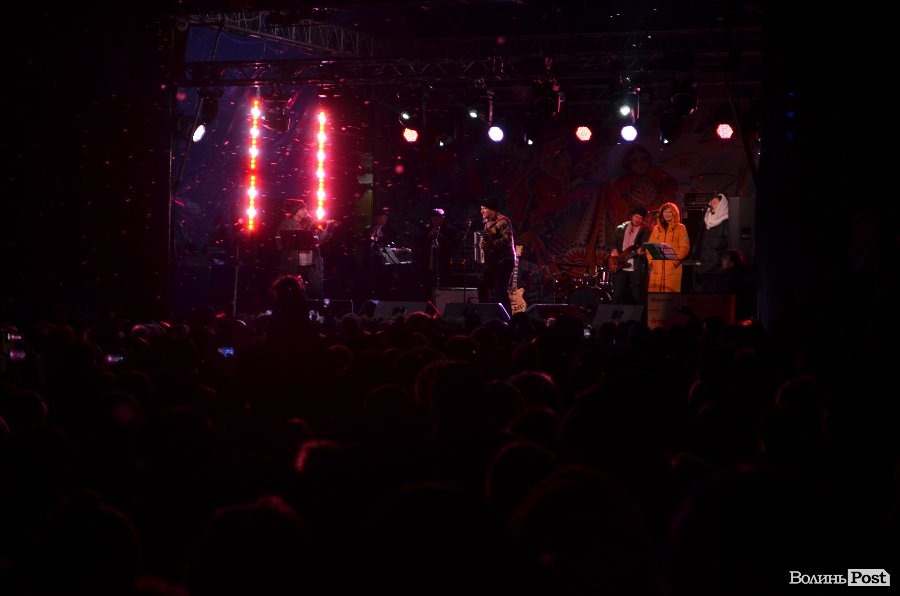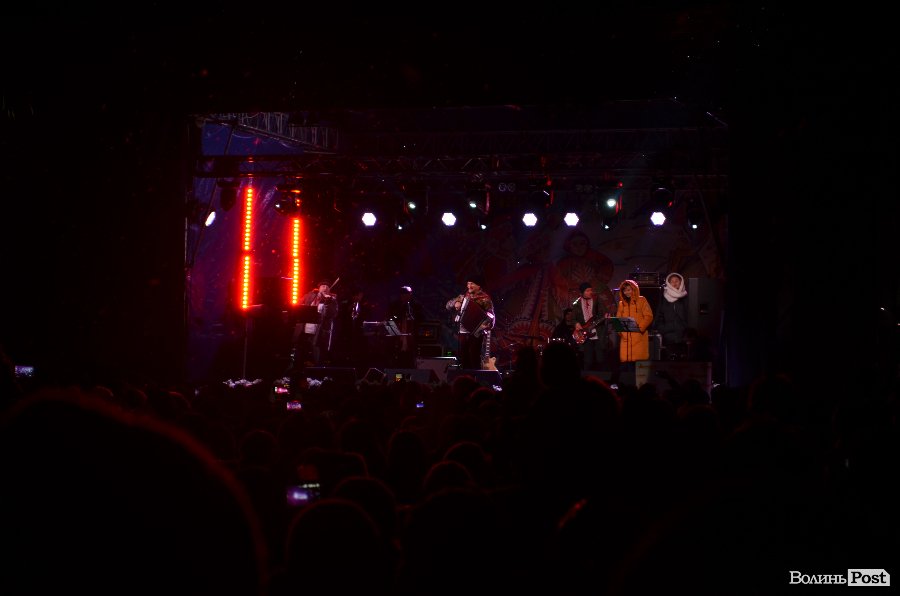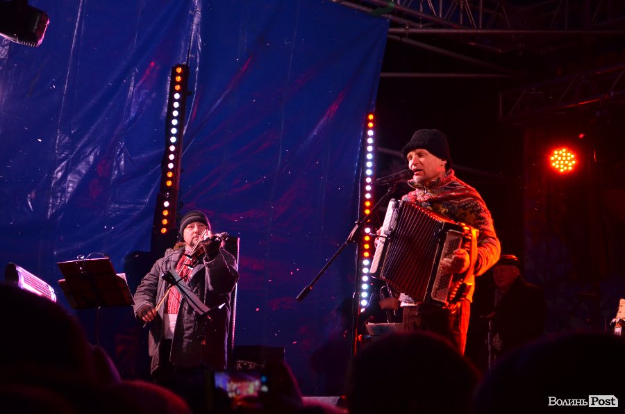 Після завершення спільної коляди на лучан чекав ще один виступ - на сцені з'явився Олег Скрипка у супроводі Le Grand Orchestra, який «запалював» слухачів шаленими ритмами та танцями.