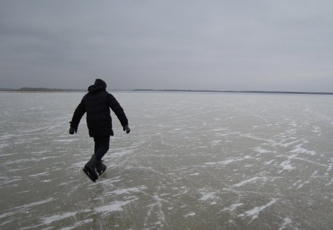 «Тут кращий лід, не зіпсований брилами льоду, як на Чорному. Є де розігнатися, та й безпечніше тут», - кажуть місцеві хлопчаки, що ходять сюди кататися уже другу зиму поспіль.