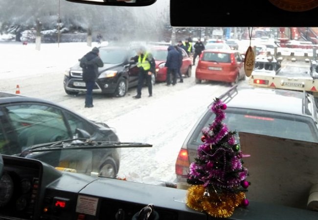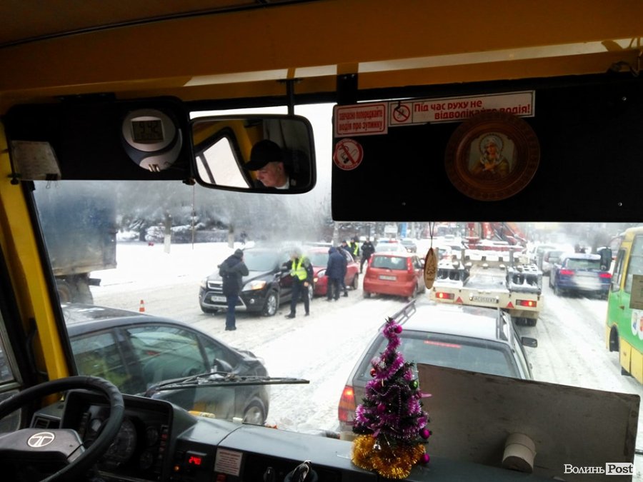 У Луцьку – перші снігові аварії. ФОТО
