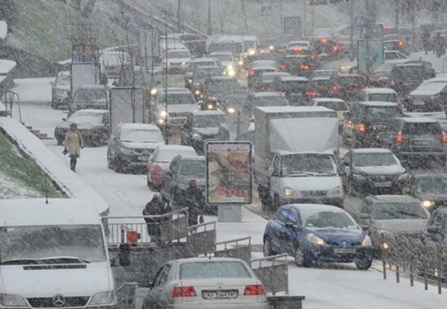 Київська влада тимчасово обмежила в’їзд до столиці для великогабаритного транспорту у напрямку з Бориспільської траси у зв’язку із снігопадом.