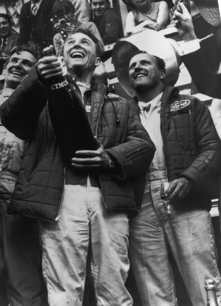 Саме Герні після перемоги в «24 годинах Ле-Мана» струснув пляшку шампанського і влаштував душ. Сам того не знаючи, американець став основоположником традиції, без якої зараз церемонія подіуму немислима ні в одних перегонах.