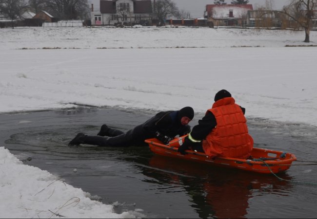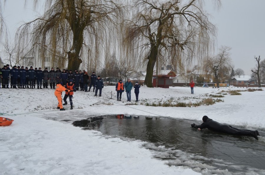 У Луцьку сьогодні, 18 січня, на Теремнівських ставках рятувальники провели навчання.