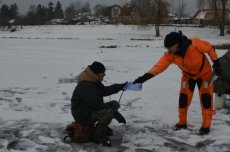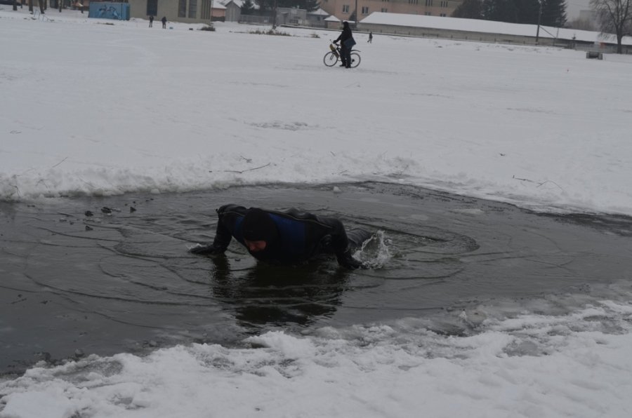 Фахівці водолазно-рятувальної справи продемонстрували різні способи порятунку людини, яка опинилася у крижаній воді та надання допомоги потерпілому.