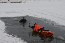 У змодельованих ситуаціях водолази використовували для порятунку людини на кризі драбину, рятувальний круг, рятувальну мотузку з кінцем «Александрова», рятувальний човен-санчата, а також пристрій «соломинка».