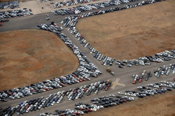 За найскромнішими оцінками, ураган Сенді, що пронісся над північним сходом Америки в жовтні минулого року, пошкодив більше 200 000 автомобілів. Близько 15 тисяч таких "потопельників" страхові компанії зібрали на злітно-посадковій смузі аеродрому Калвертон (Calverton), який раніше використовувався для базування винищувачів "F-14 Tomcat".