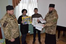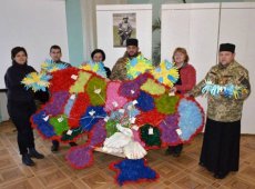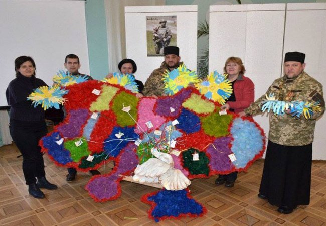 Військові капелани протоієрей Володимир Труш і священик Олександр Вронський привезли до Волинського краєзнавчого музею велику мапу України, виготовлену з тканини учасниками осередку національно-патріотичного виховання «Маленькі патріоти» Волинського державного центру естетичного виховання учнів загальноосвітніх та професійно-технічних навчальних закладів.