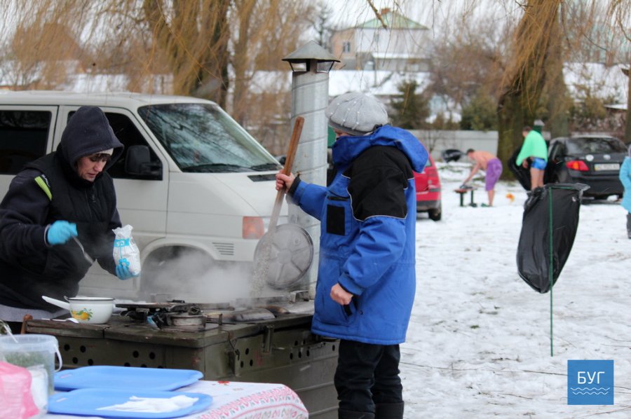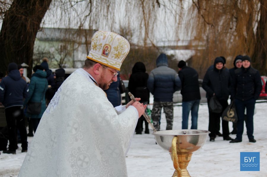 Освятив воду отець Ігор Бігун. Хоча на вулиці була справжня зимова морозна погода, охочих прийняти крижану купіль було чимало.