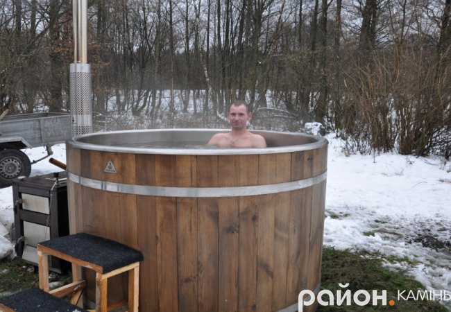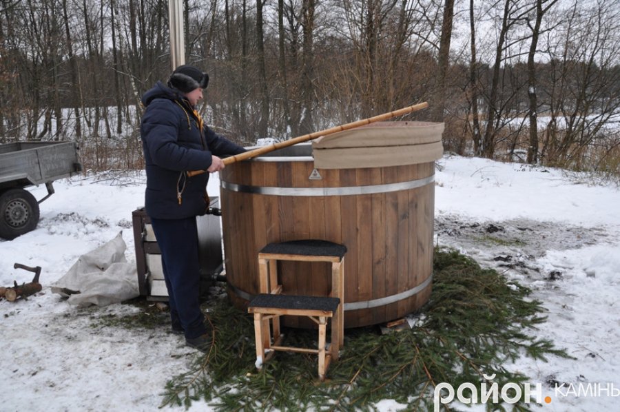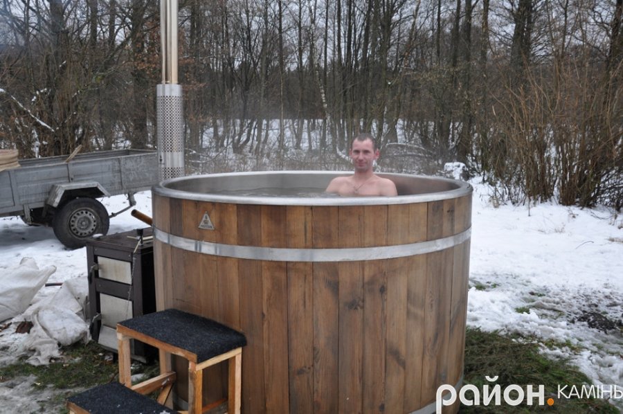 Ось як загартовували своє тіло та дух камінь-каширці. До речі, вони також мали можливість попаритися і у гарячій води. На березі озера була встановлена лазня-бочка з підігрівом.