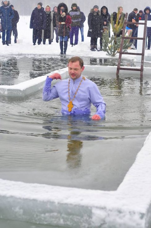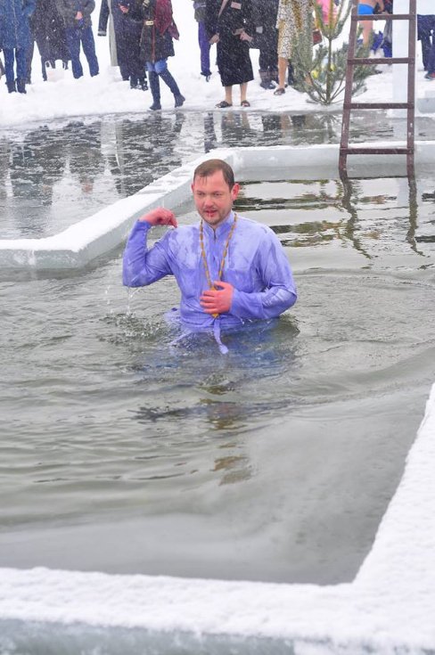 Освятивши воду та благословивши парафіян на святе купання, священик сам показав приклад та першим занурився у цілющу світязьку воду.