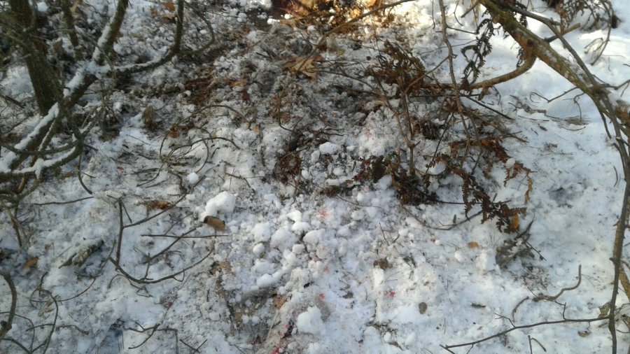 Під час огляду території виявили також сліди собаки. За слідами, що були на снігу, за метрів 400 від зупинки автівки у лісі виявили місце, де, очевидно, й була добута тваринка.
