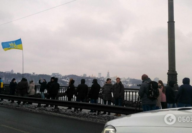 У Києві 22 січня на мосту Патона відбулася акція "День Соборності України".