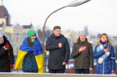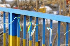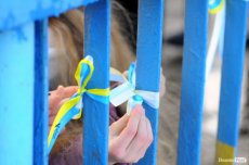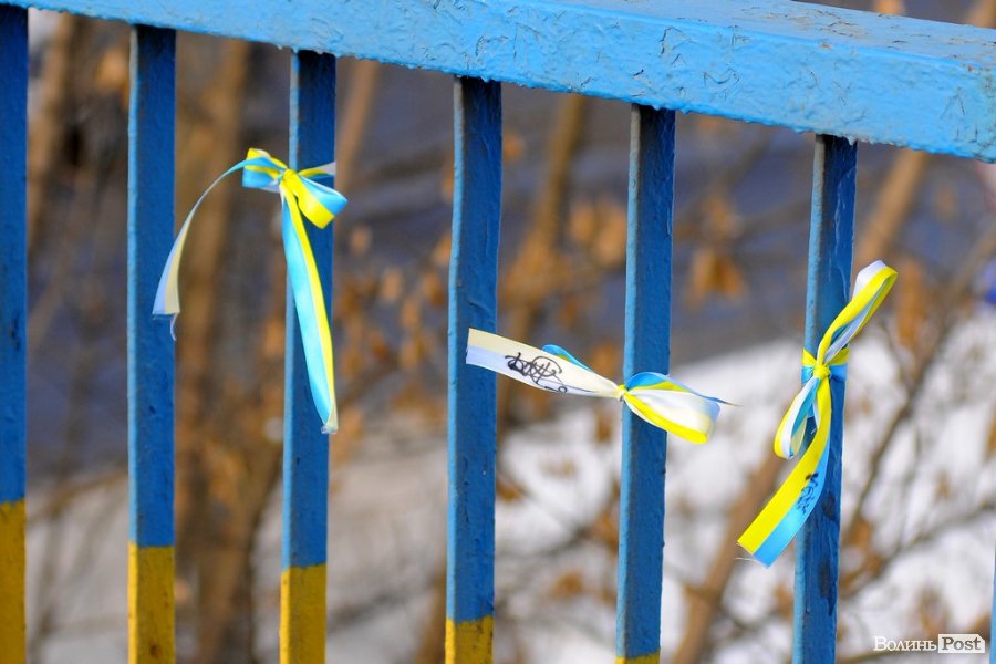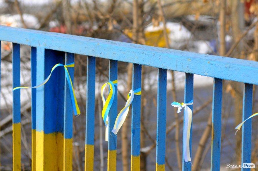 Після того, як учасники акції вишикувалися на мості, усі спільно виконали гімн, а потім зав’язали синьо-жовті стрічки на мості.